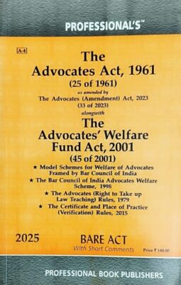 The Advocates Act, 1961 is the foundational legislation governing the legal profession in India. This indispensable 2025 edition (A-4 size) provides the Bare Act with Short Comments, making it the perfect quick-reference guide for lawyers, law students, Bar Council members, and judicial staff.